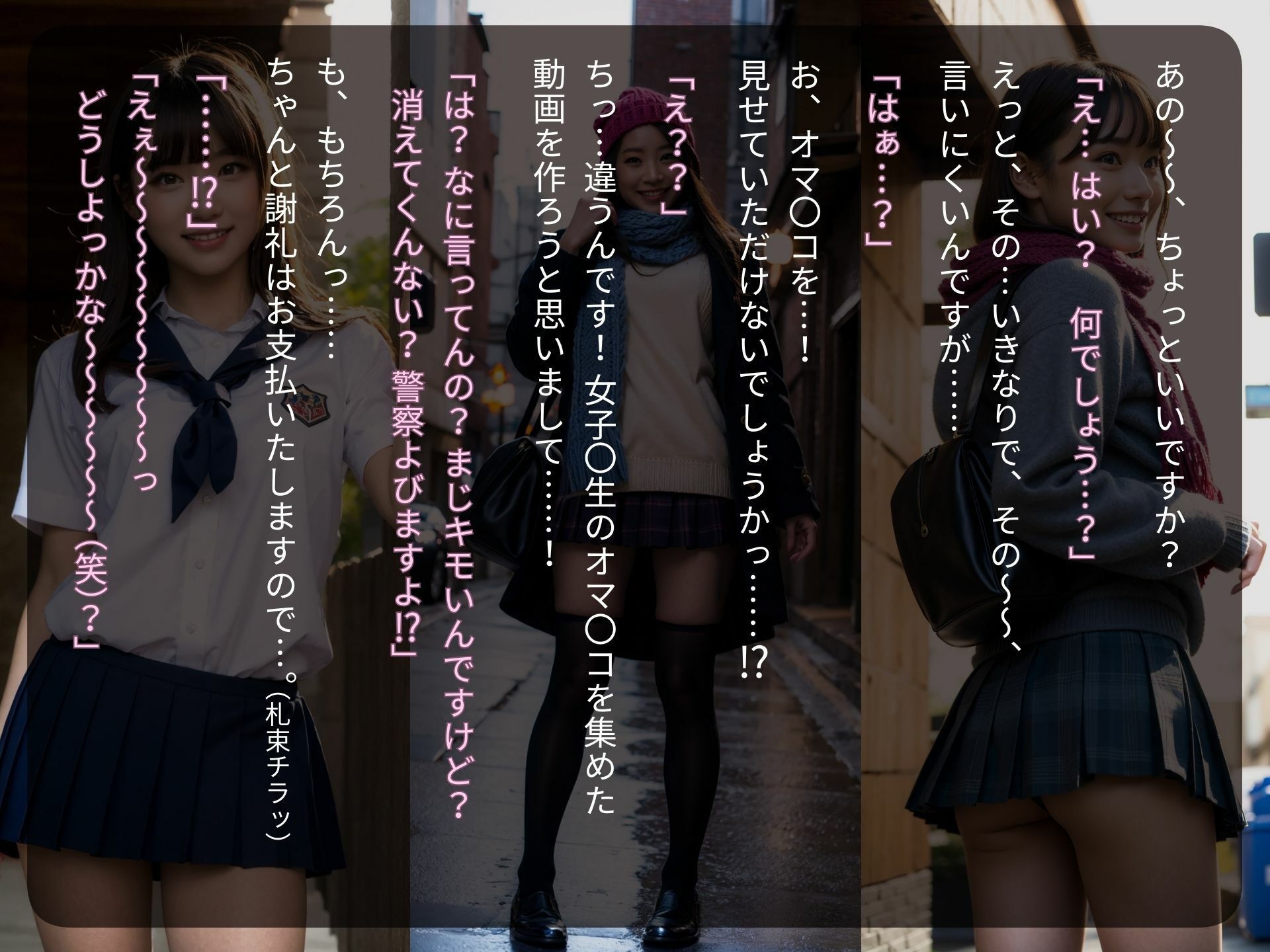 | タイトル | 街撮りJK〜ちょっとオマ○コ、見せてもらってイイですか?〜【リアル実写系女子校生写真集】 |